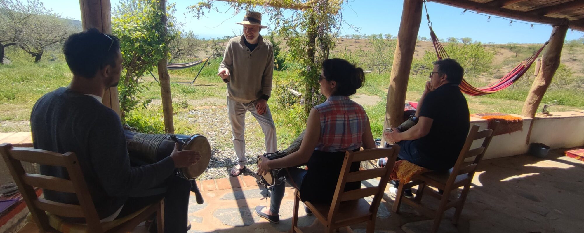 I just got back from a week long retreat full of singing, drumming, and relaxing. Although the dates didn’t fully fit my schedule, Vicky and Dave were very flexible in accommodating me and tailored a couple of custom workshop days to my liking which was incredible. The workshops themselves were just the right amount of challenging with a very comfortable atmosphere to learn, so I could playfully grow my knowledge of Afro Cuban songs and rhythms. The finca is beautifully situated in between almond fields with beautiful views of the surrounding mountains and starry night skies - and there’s various beautiful porches and hammocks to enjoy them from during siesta. Special shout-out also to the food, I’m a vegetarian and just loved all the dishes made from fresh, local veggies! Thanks for the perfect week!